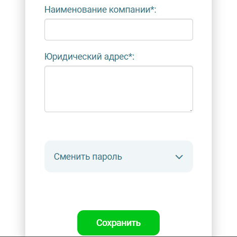 5. Заполните информацию о вашей организации: email, ИНН, юридическое название и юридический адрес